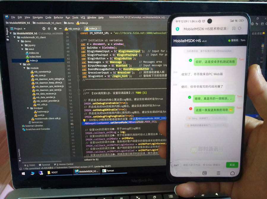 MobileIMSDK的H5端是一套纯JS编写的基于标准WebSocket的即时通讯库: