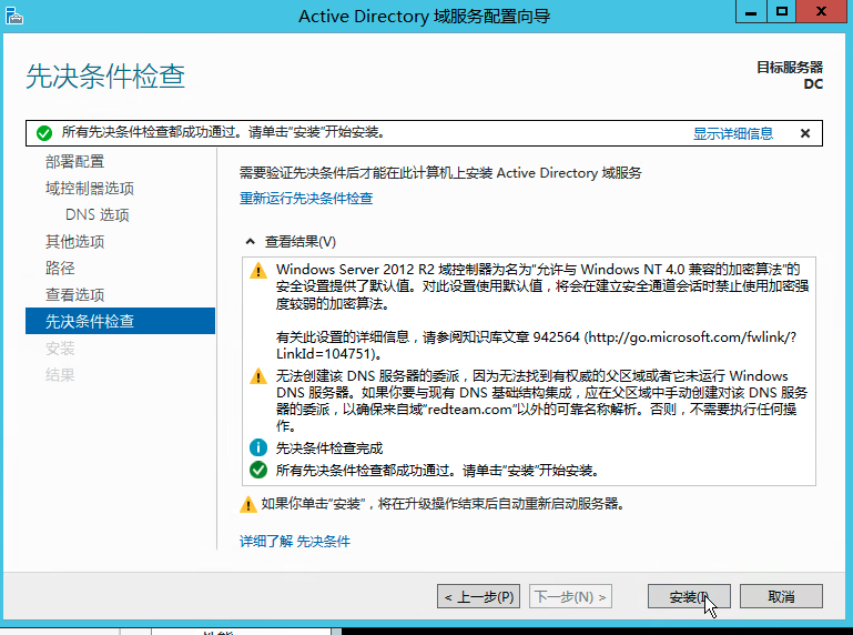 服务器管理员(administrator)的密码不能太简单,建议用大小写和字符混合的,否则影响先决条件检查的结果。这里使用的操作系统是Windows server 2012