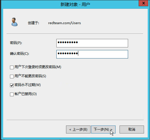 新建一个域用户,用于第二台机器win2008登录域控服务器