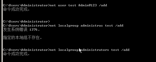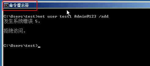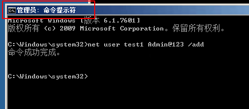 过了UAC就可以添加用户,为了进一步演示,再添加一个test1用户