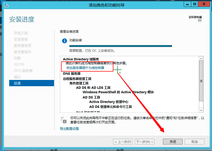 不要带点关闭,先点将此服务器升级为域控服务器,之后再关闭