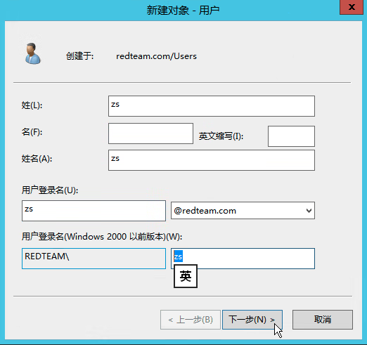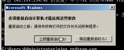 合起来就是REDTEAM\zs,密码为你添加的域用户密码,登录成功后会发现重启不了