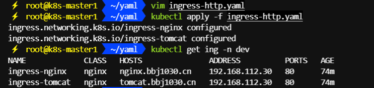 将以上 nginx.bbj1030.cn 和 tomcat.bbj1030.cn 解析到 master 节点 192.168.112.10上