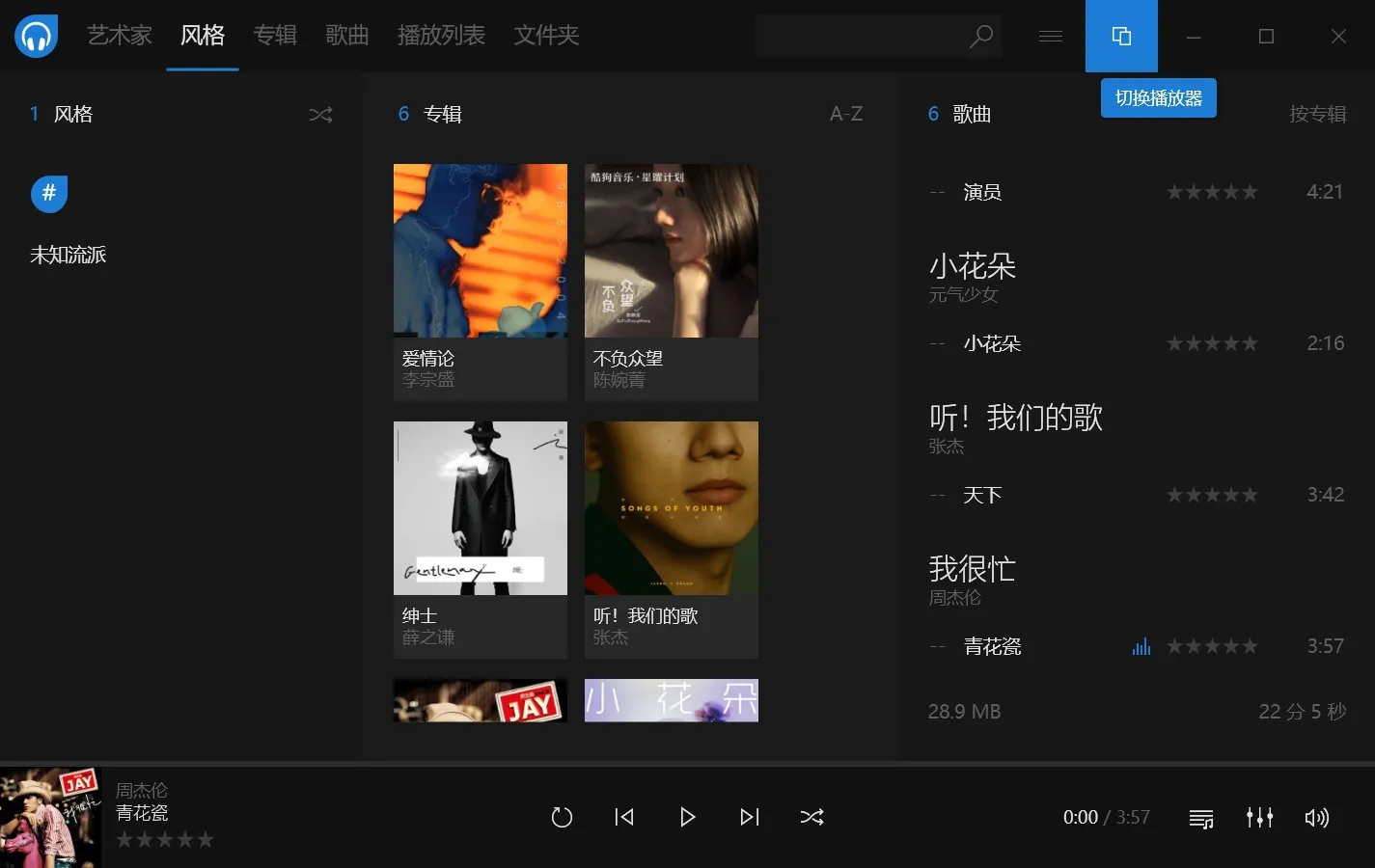 点击右上角的【切换播放器】按钮,可以开启【封面模式】。