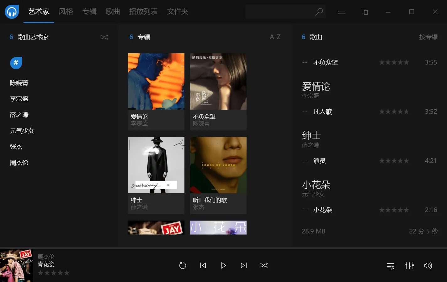 Dopamine 是一款简单好用的、功能强大的、完全免费且无广告的本地音乐播放器。它有绿色便携版(30MB)和可安装版(34MB),目前仅支持 Windows 平台。