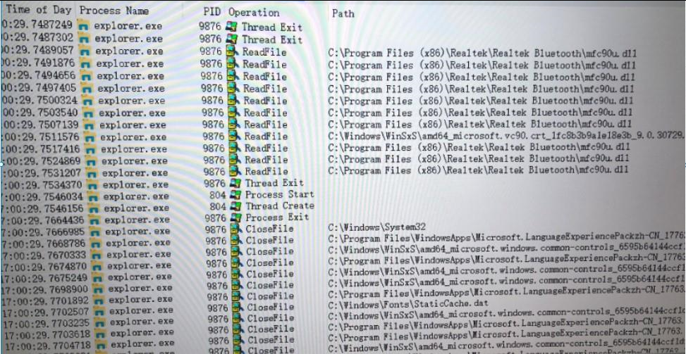 此时通过 Process Monitor 工具抓取 explorer 进程信息,发现了如上图的有趣的内容。里面很受我关注的就是存在了进程退出