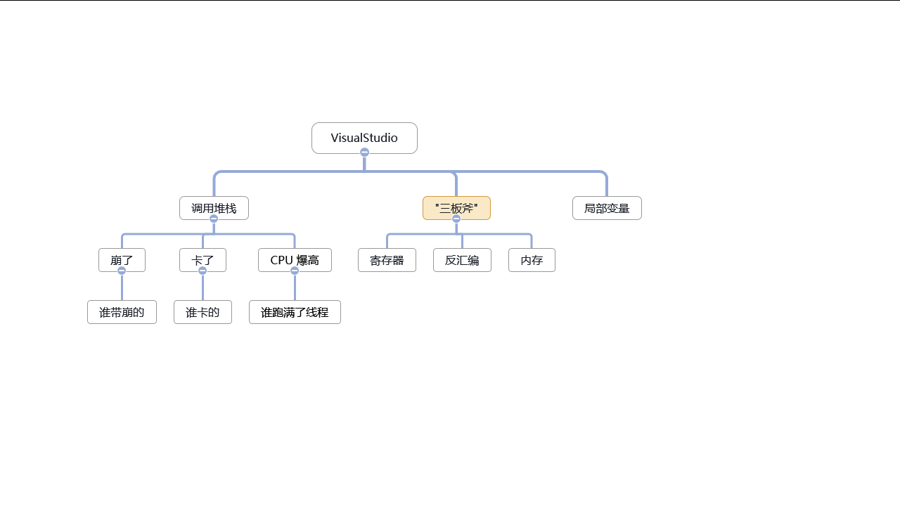 回顾一下,这就是咱拖入 DUMP 文件之后,依靠 Visual Studio 里面的调用堆栈进行问题分析的常见三个案例。对应软件崩溃的问题,可以通过调用堆栈看到是谁带崩的。对应 CPU 不动的问题,可以通过调用堆栈看到是谁卡住了主线程。对应 CPU 爆高的问题,可以通过调用堆栈看到是谁跑满了线程
