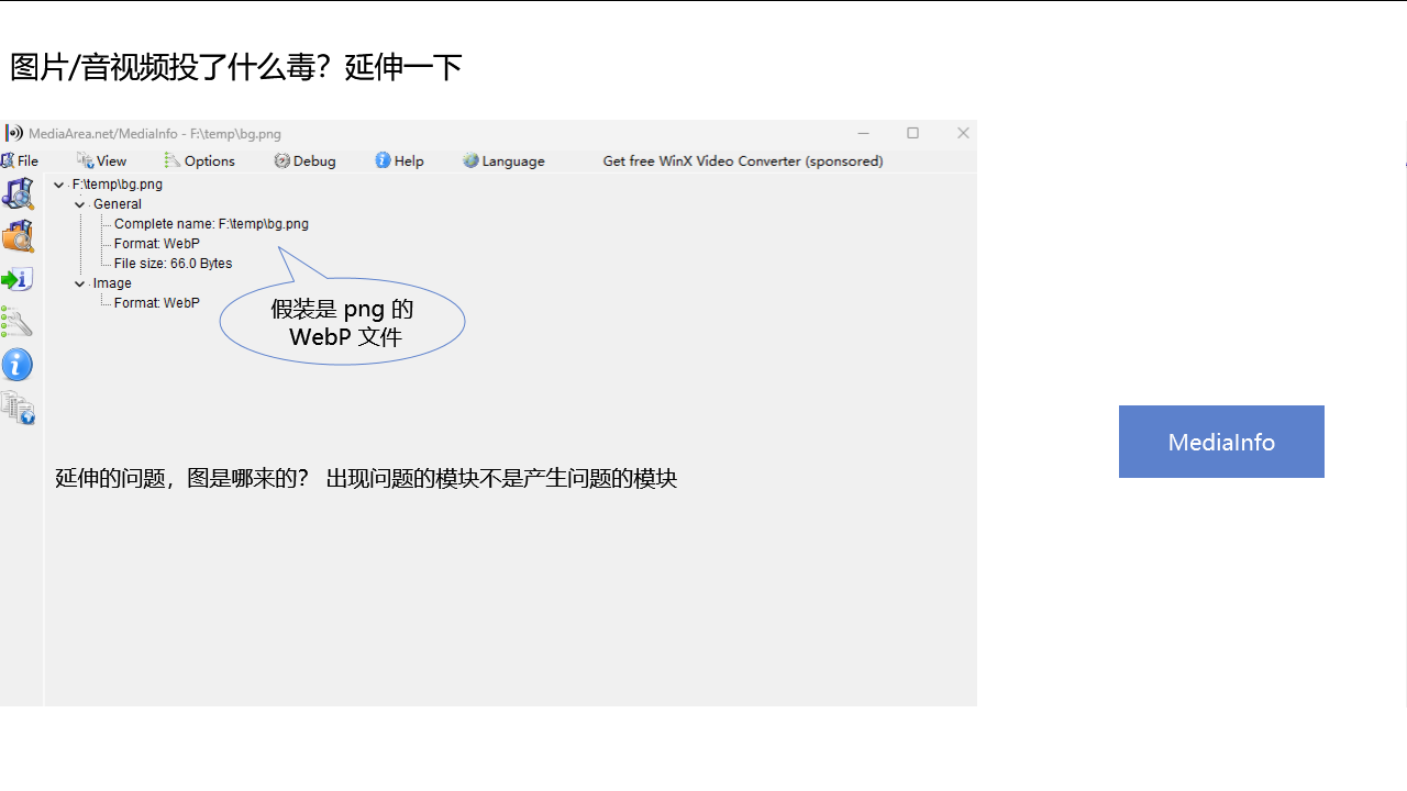 延伸一下,如何了解图片、音视频等文件是否被投毒了?这里推荐一个工具,通过 MediaInfo 工具可以帮助咱看到文件的许多信息