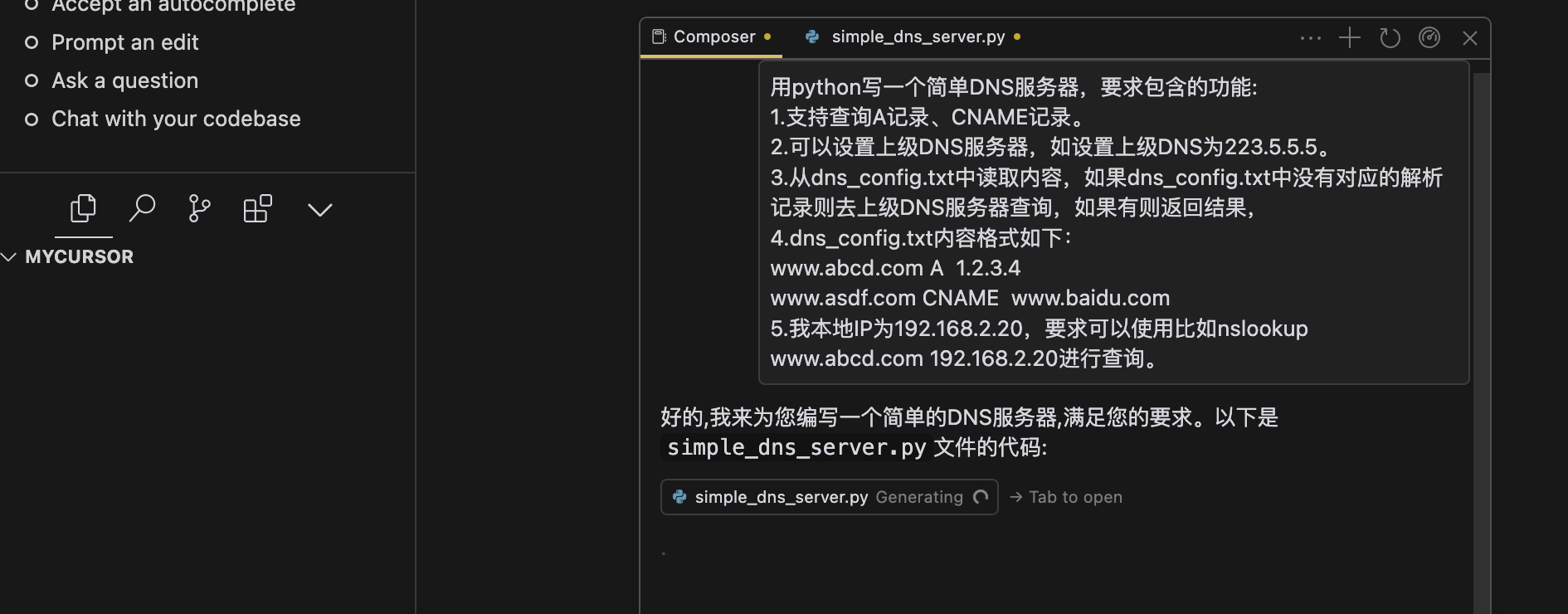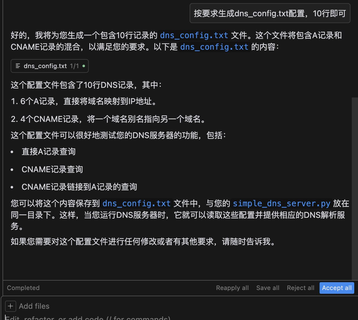 不仅写出来simple_dns_server.py文件还是给出了使用说明。