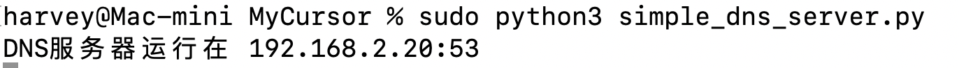 1.支持查询A记录、CNAME记录。 2.可以设置上级DNS服务器,如设置上级DNS为223.5.5.5。 3.从dns_config.txt中读取内容,如果dns_config.txt中没有对应的解析记录则去上级DNS服务器查询,如果有则返回结果, 4.dns_config.txt内容格式如下: www.abcd.com A 1.2.3.4 www.asdf.com CNAME www.baidu.com 5.我本地IP为192.168.2.20,要求可以使用比如nslookup www.abcd.com 192.168.2.20进行查询。