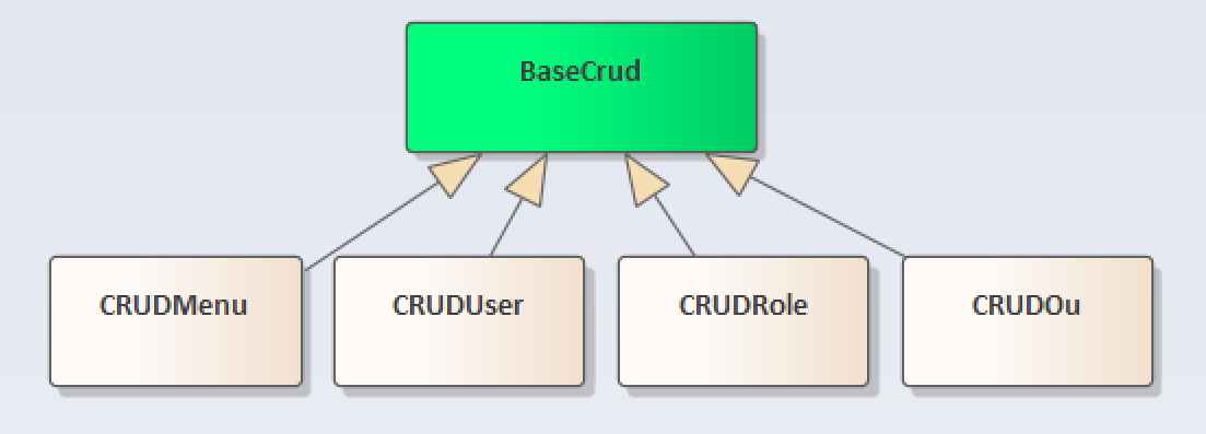 通过基类BaseCrud定义,我们接受一些子类对象的不同参数实现个性化实现。