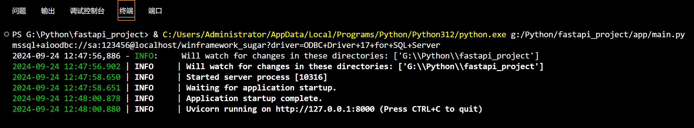 我们完成了项目后,运行FastAPI项目,如下所示。