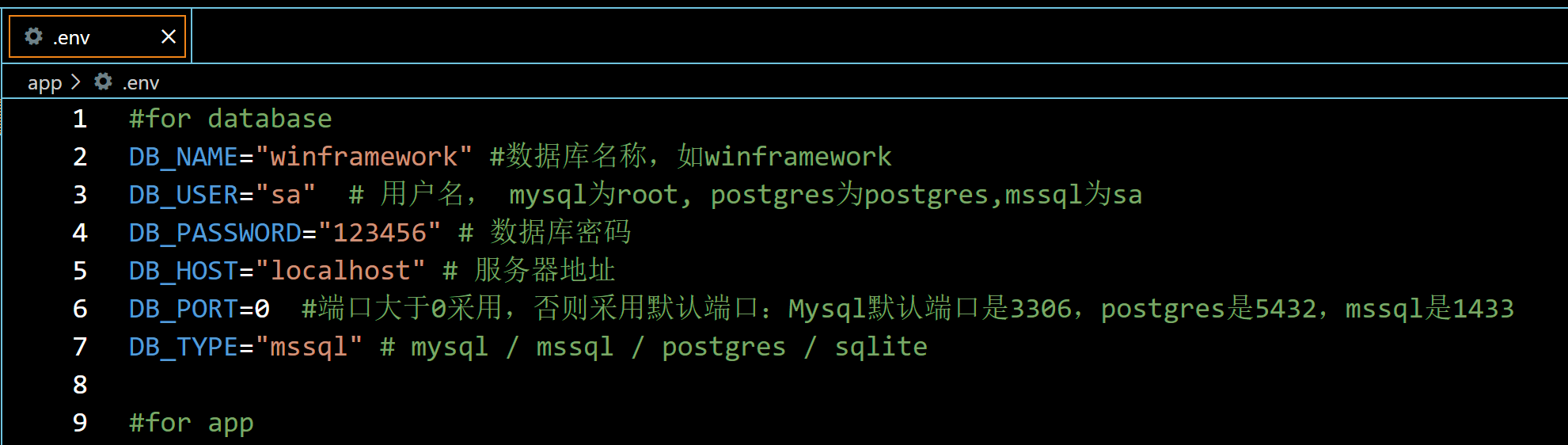 数据库的配置信息我们使用Pydantic 和 Pydantic-setting来实现 .env文件内容自动加载到Pydantic 对象中即可。如我们项目的.env环境配置文件如下。