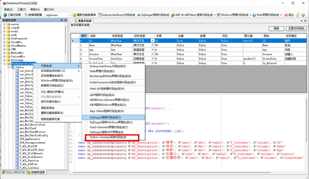 我们在代码生成工具中加入Python的后端代码的生成,一键可以生成各层的类文件,其中包括最为繁琐的Model映射类信息。