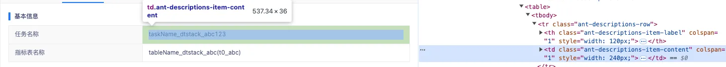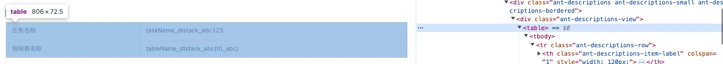 这个 Descriptions 组件的根元素是 table 元素。table 元素相比起普通的 div 元素来说,更加复杂,其相关的 CSS 属性更加难以捉摸。
