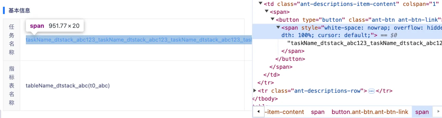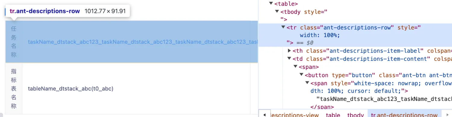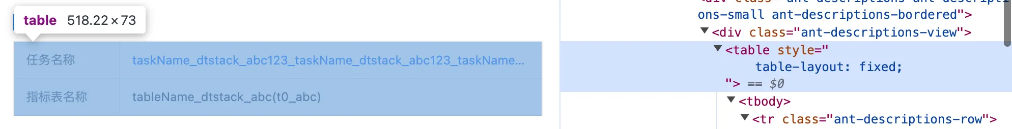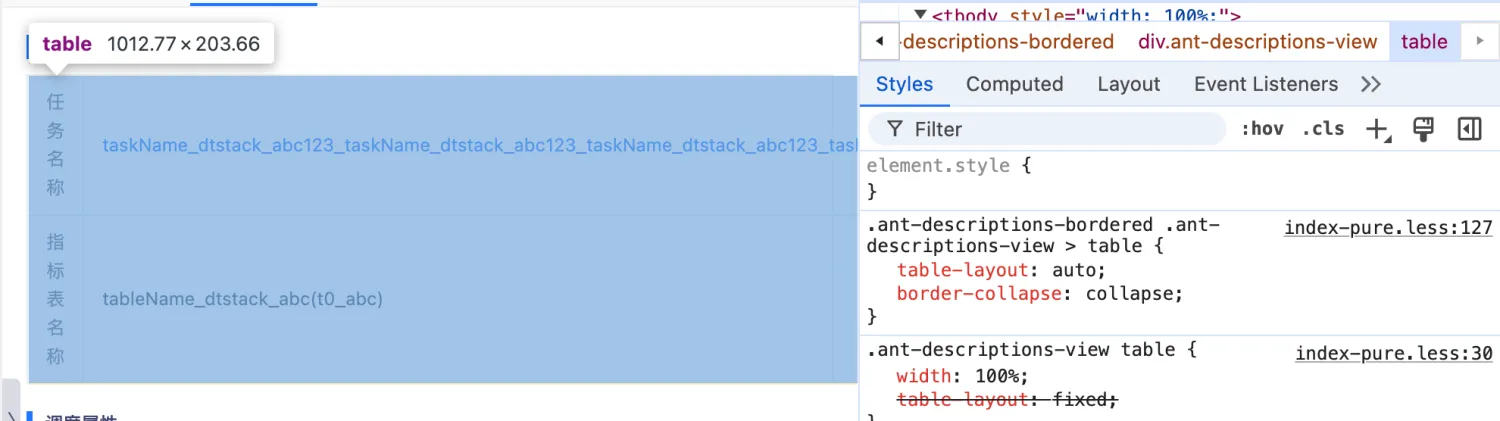 那么,可以确认,如果我们想要用 Descriptions 组件实现文案的省略,则不可避免地需要将 table-layout 设置为 fixed 属性。
