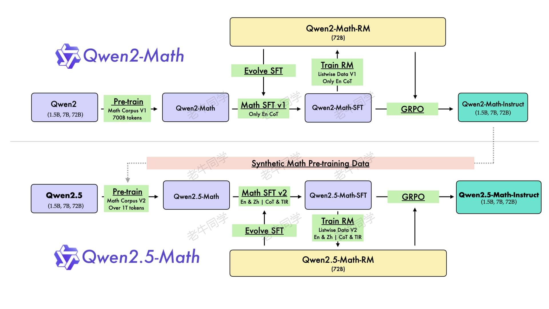 另外,有关 Qwen2.5-Math 的预训练架构设计,有个特别有趣的地方:Qwen2.5-Math的部分预训练数据,竟然是由Qwen2-Math-Instruct 模型提供的,感觉它们已经开始在左右互搏了,因此世界领先也就不为奇了。