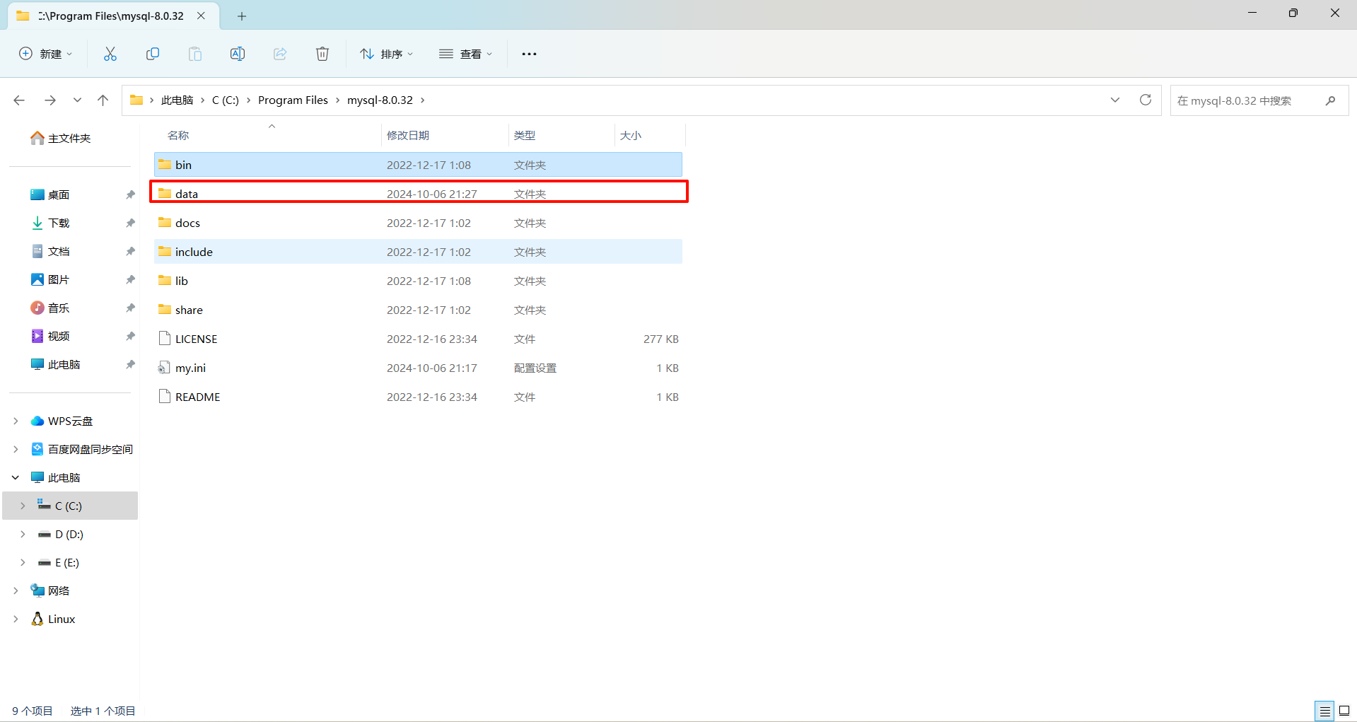 datadir = C:\\Program Files\\mysql-8.0.32\\data 【根据自己路径进行配置,没有data文件也这么写】