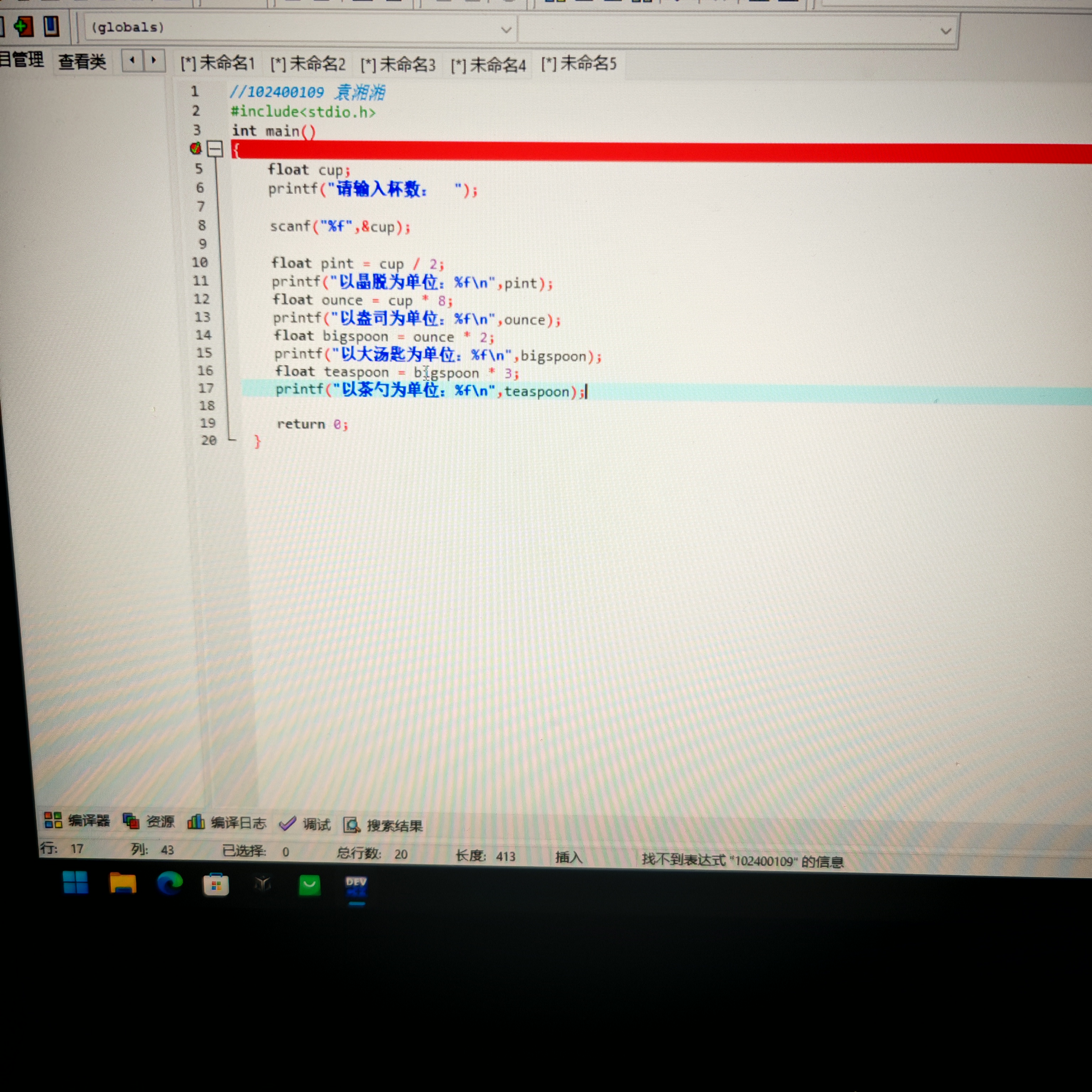 2,问题:不慎把main打成maun,且反复检查也看不到