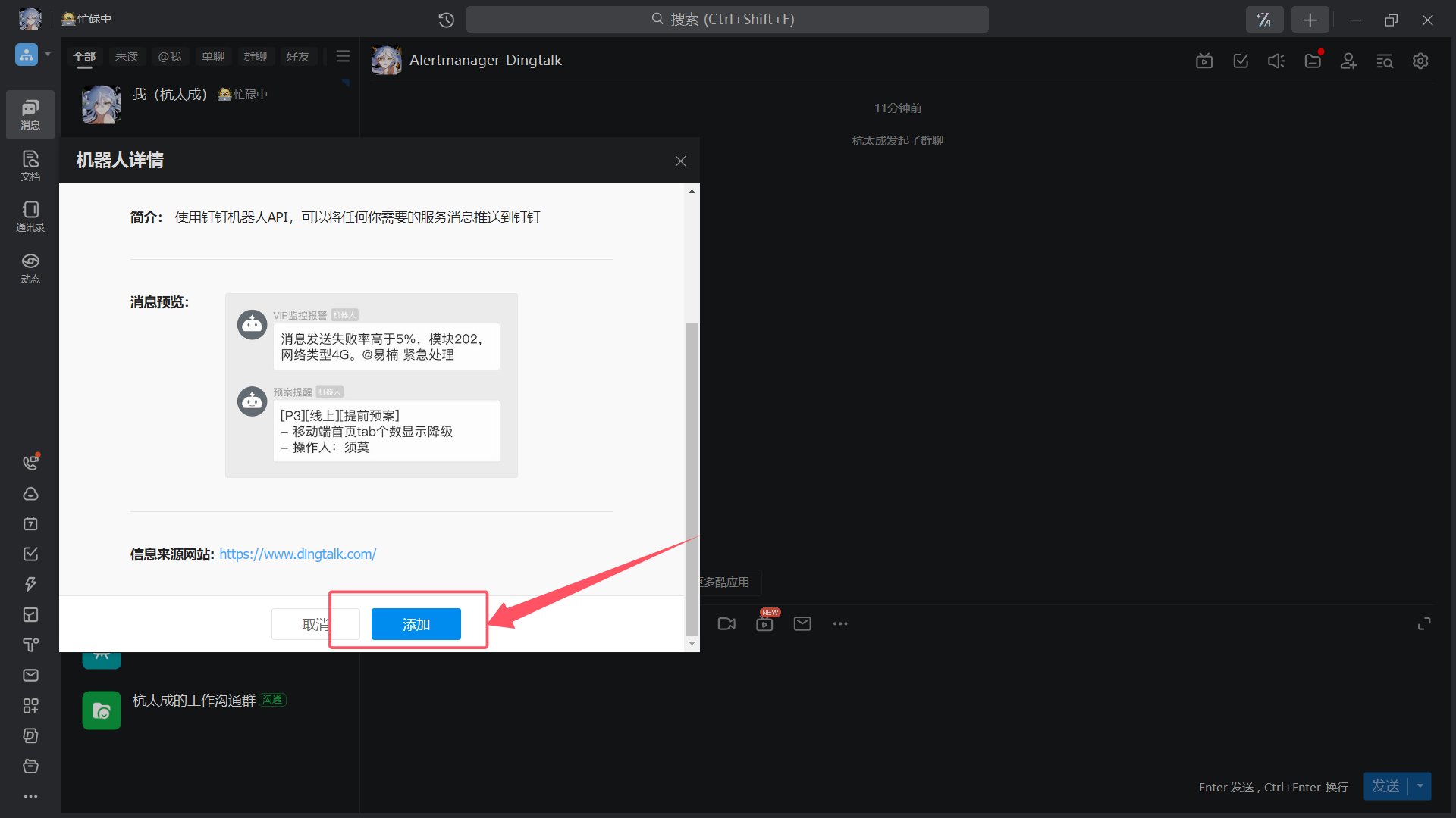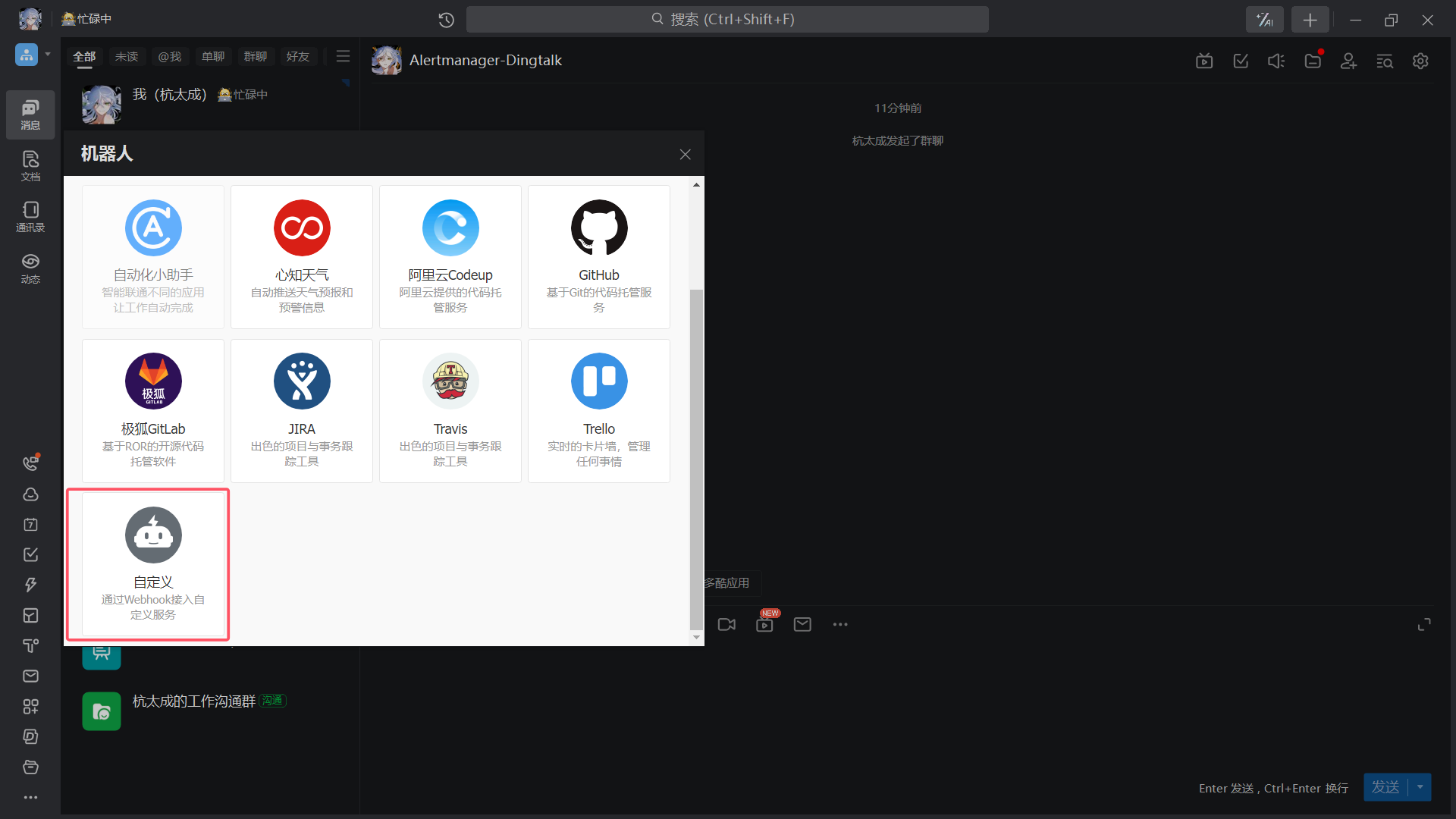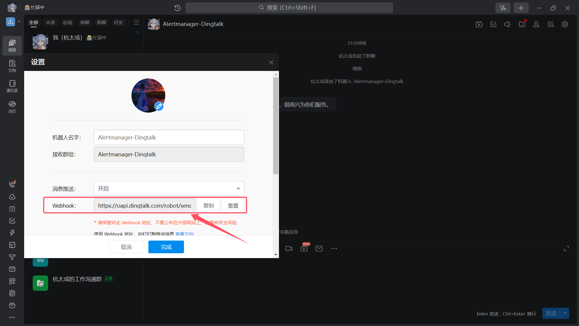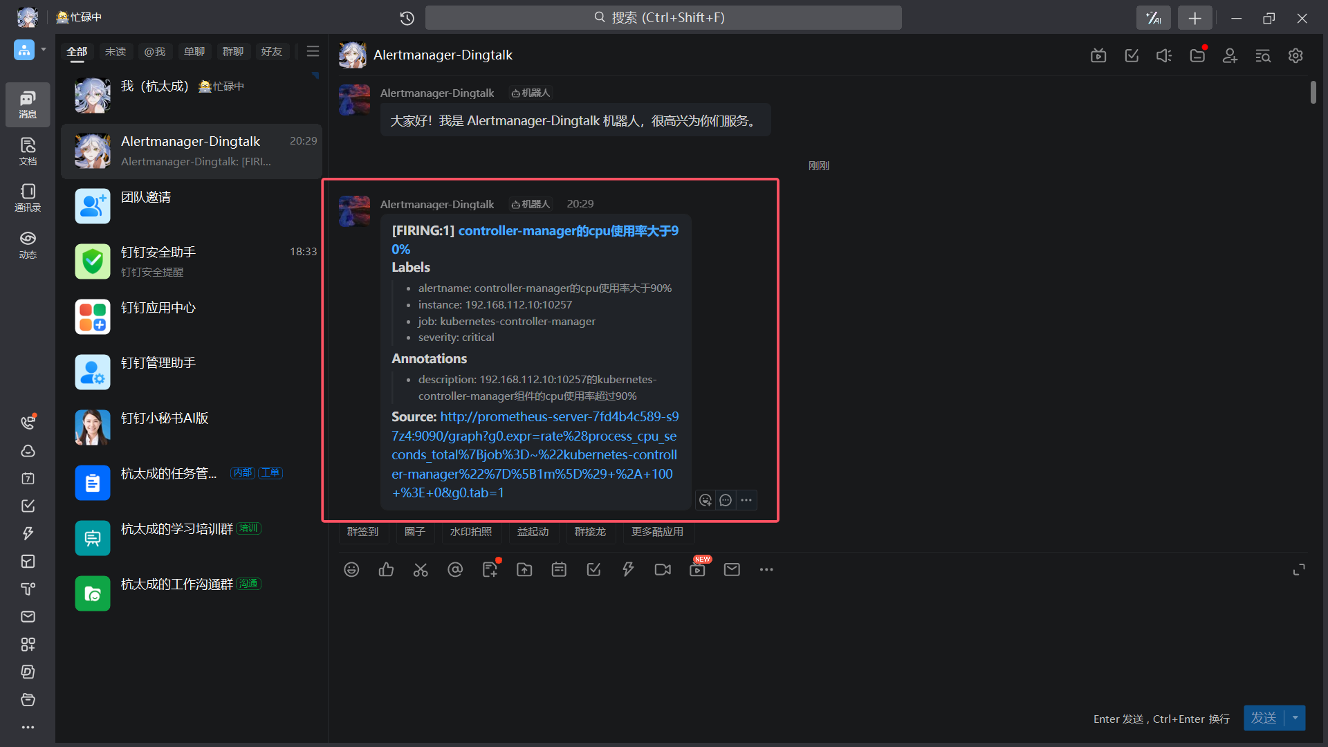 - url: 'http://192.168.112.10:8060/dingtalk/cluster1/send'