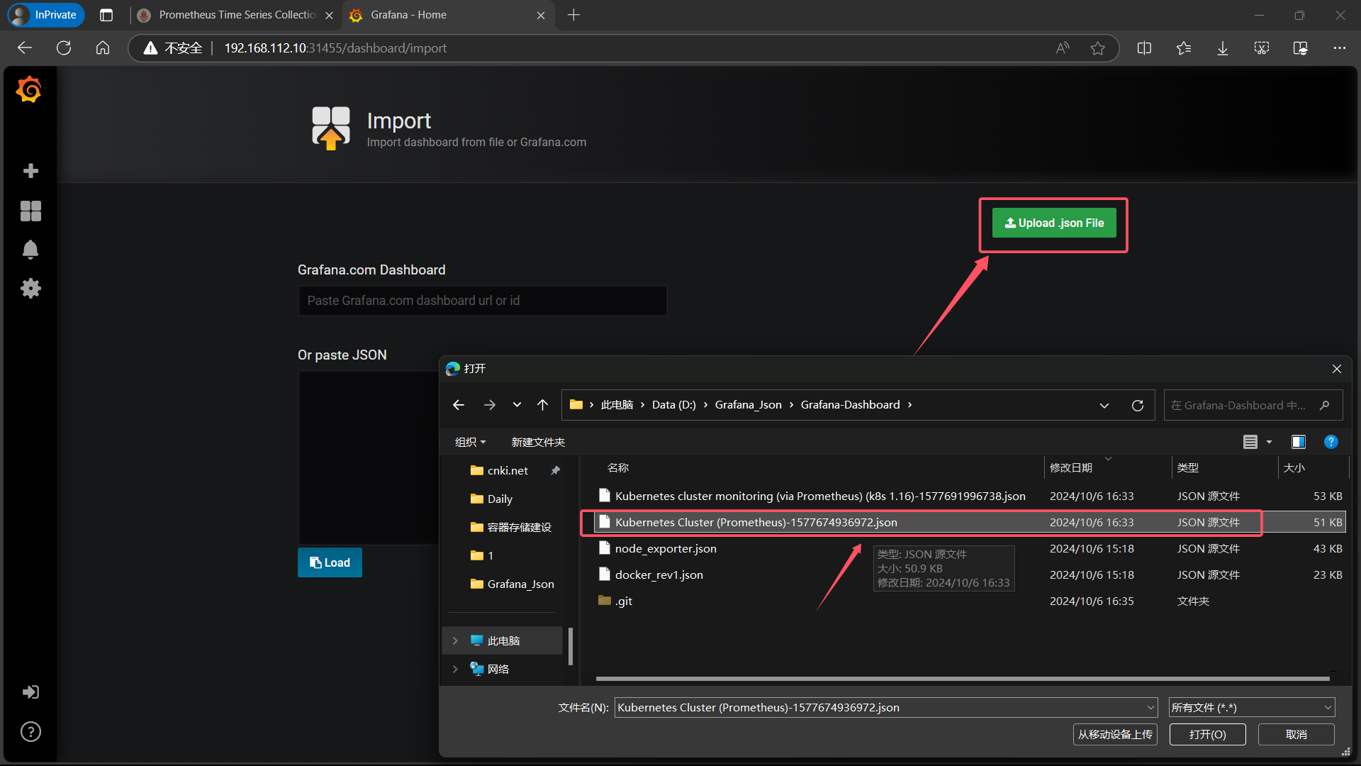 - 6.6、向 Grafana 导入 kube-state-metrics json 文件