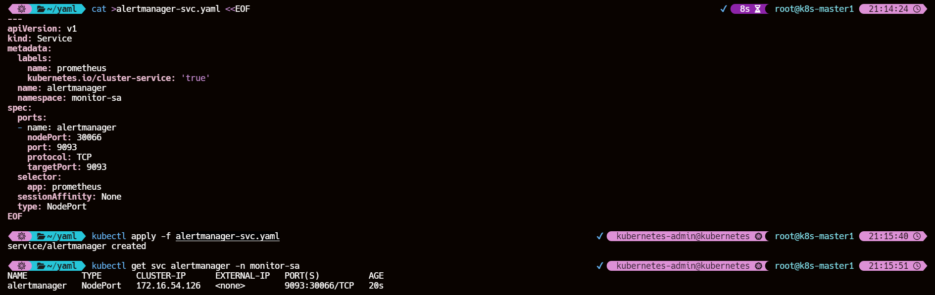 - 4、重新生成并创建 alertmanager-svc.yaml 文件