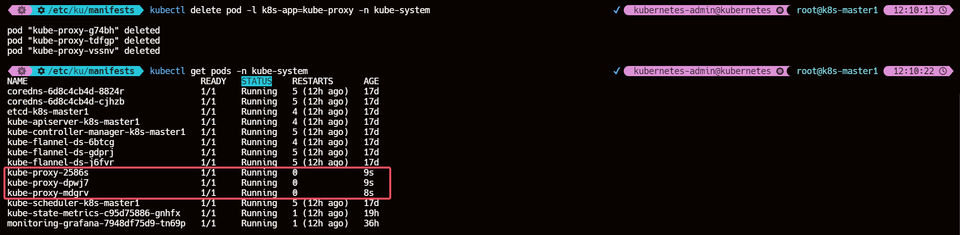 kubectl delete pod -l k8s-app=kube-proxy -n kube-system