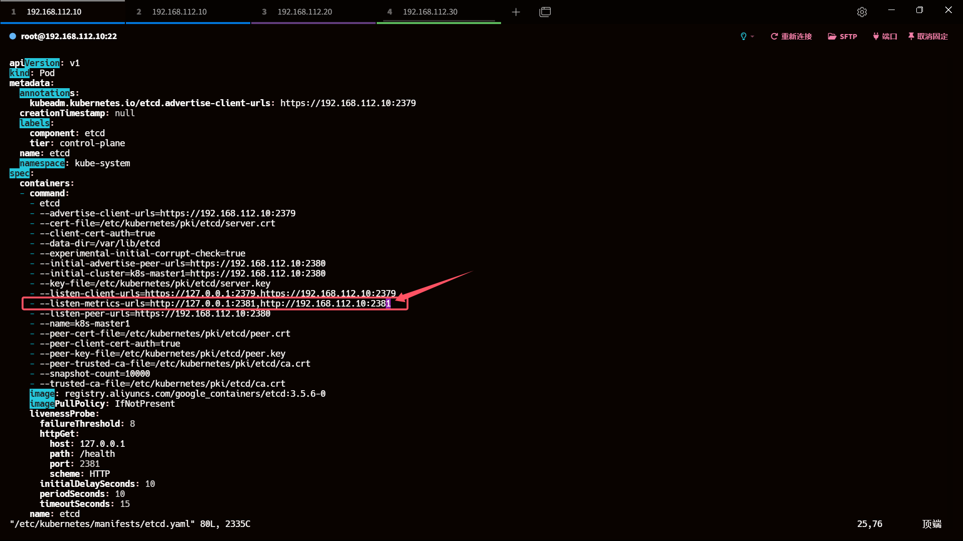 - --listen-metrics-urls=http://127.0.0.1:2381,http://192.168.112.10:2381