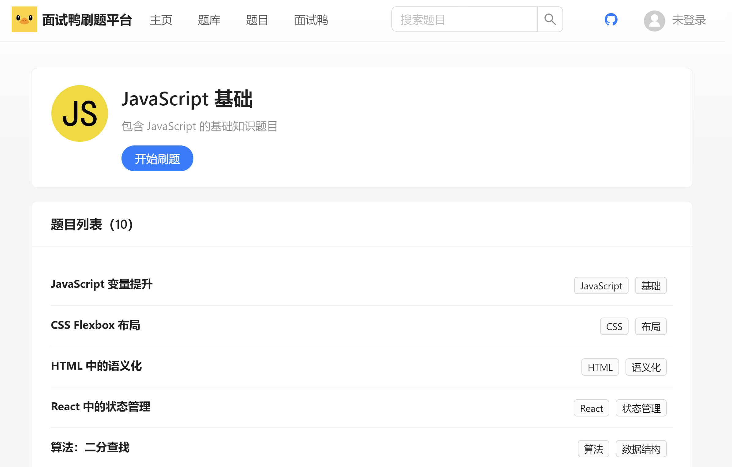 访问主页、题库大全页、题目大全页,都能正常访问: