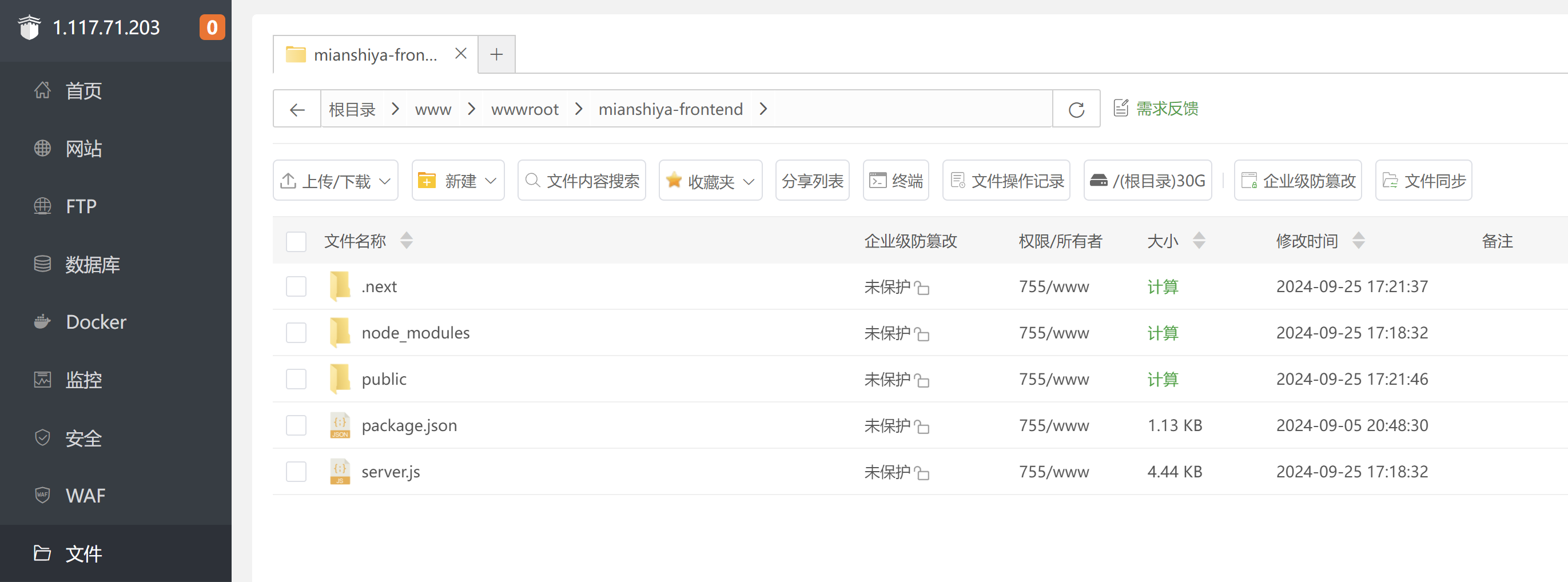 把 standalone 目录下的所有文件上传到服务器上(可以新建一个 mianshiya-frontend 目录):