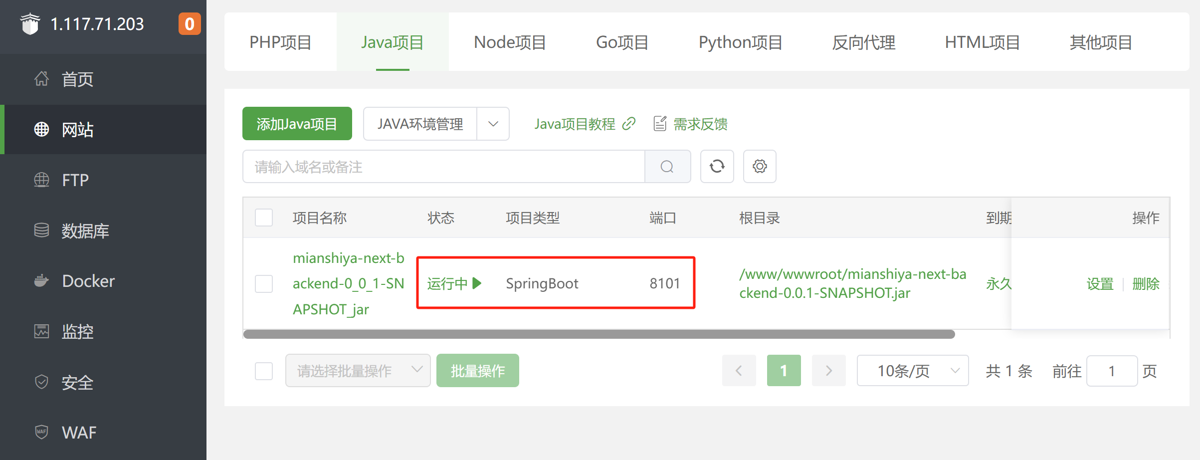 为了方便,本项目前端和后端均使用宝塔面板进行部署,可以很方便地管理服务器。