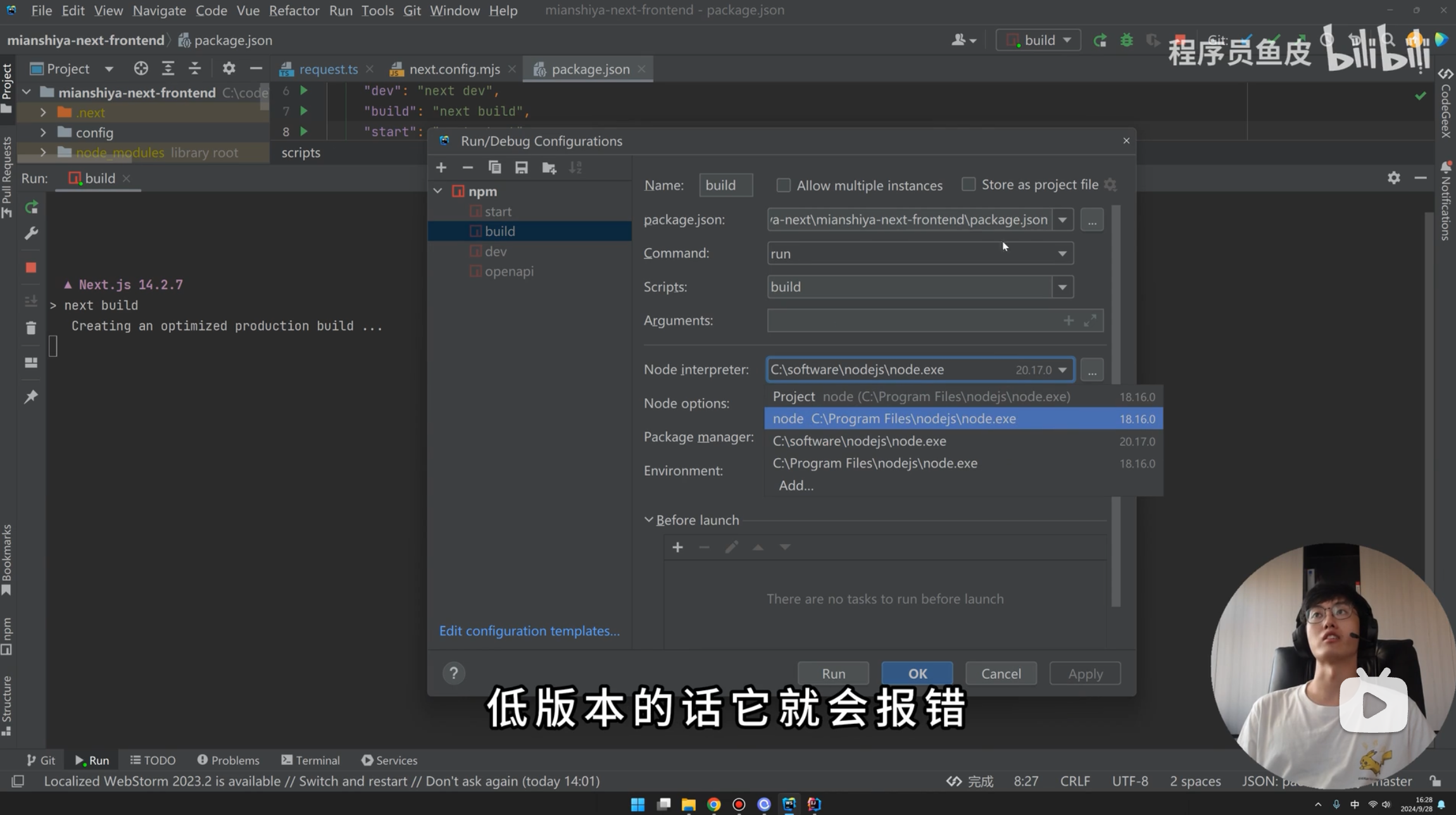 构建时,可能会遇到一些类型错误,这类错误不影响运行,但是会在 Next.js 打包时被检测,可以根据实际情况修改。或者直接在打包时忽略 TypeScript 错误。修改 next.config.mjs 配置文件即可: