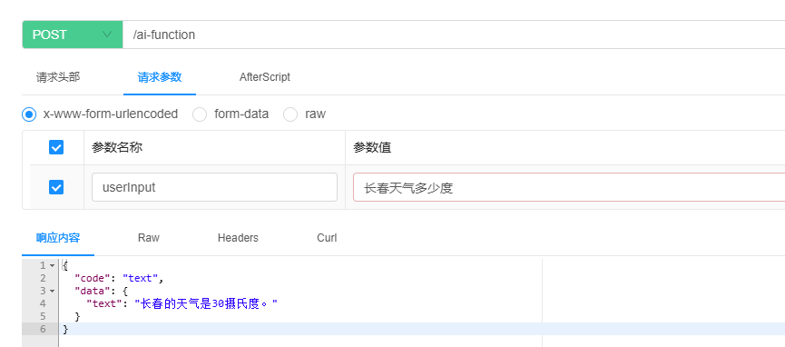 ChatDataPO functionGenerationByText(@RequestParam("userInput") String userInput) {