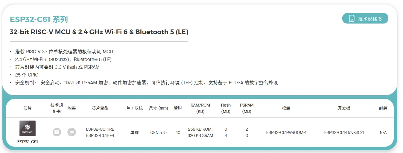 3.2 ESP32-C61(32-bit RISC-V MCU & 2.4 GHz Wi-Fi 6 & Bluetooth 5 (LE))