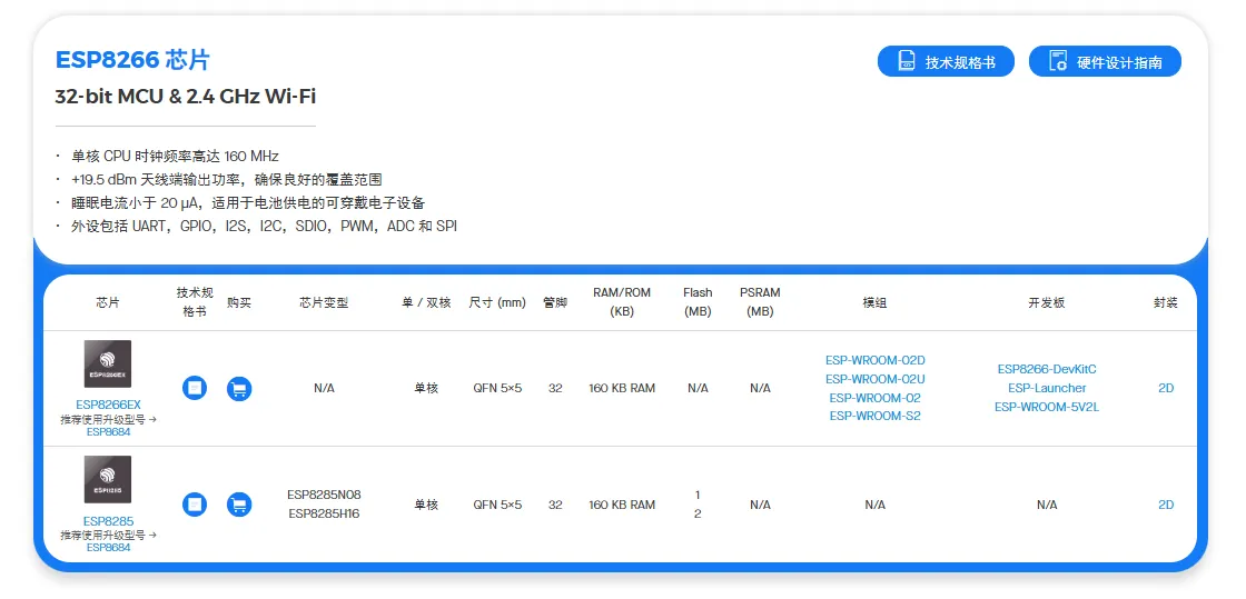 官网芯片概览:https://www.espressif.com.cn/zh-hans/products/socs