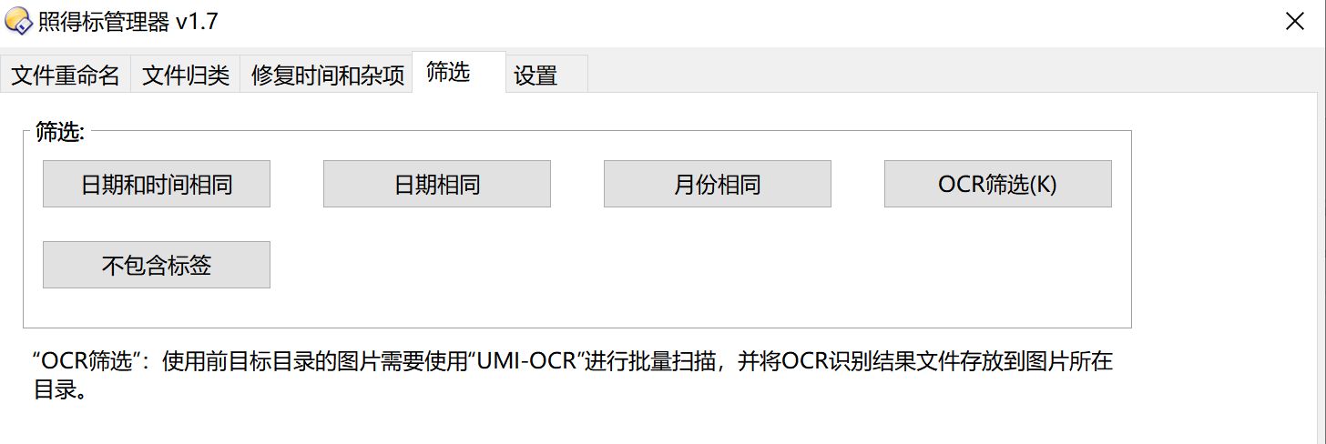 当Umi-OCR批量识别完成后,就会在图片目录中生成一个[OCR]_XXXXXXXXX_XXXXXXXX_XXXX.txt的文件,“照得标”正是读取了这个文件才能根据文本过滤图片。