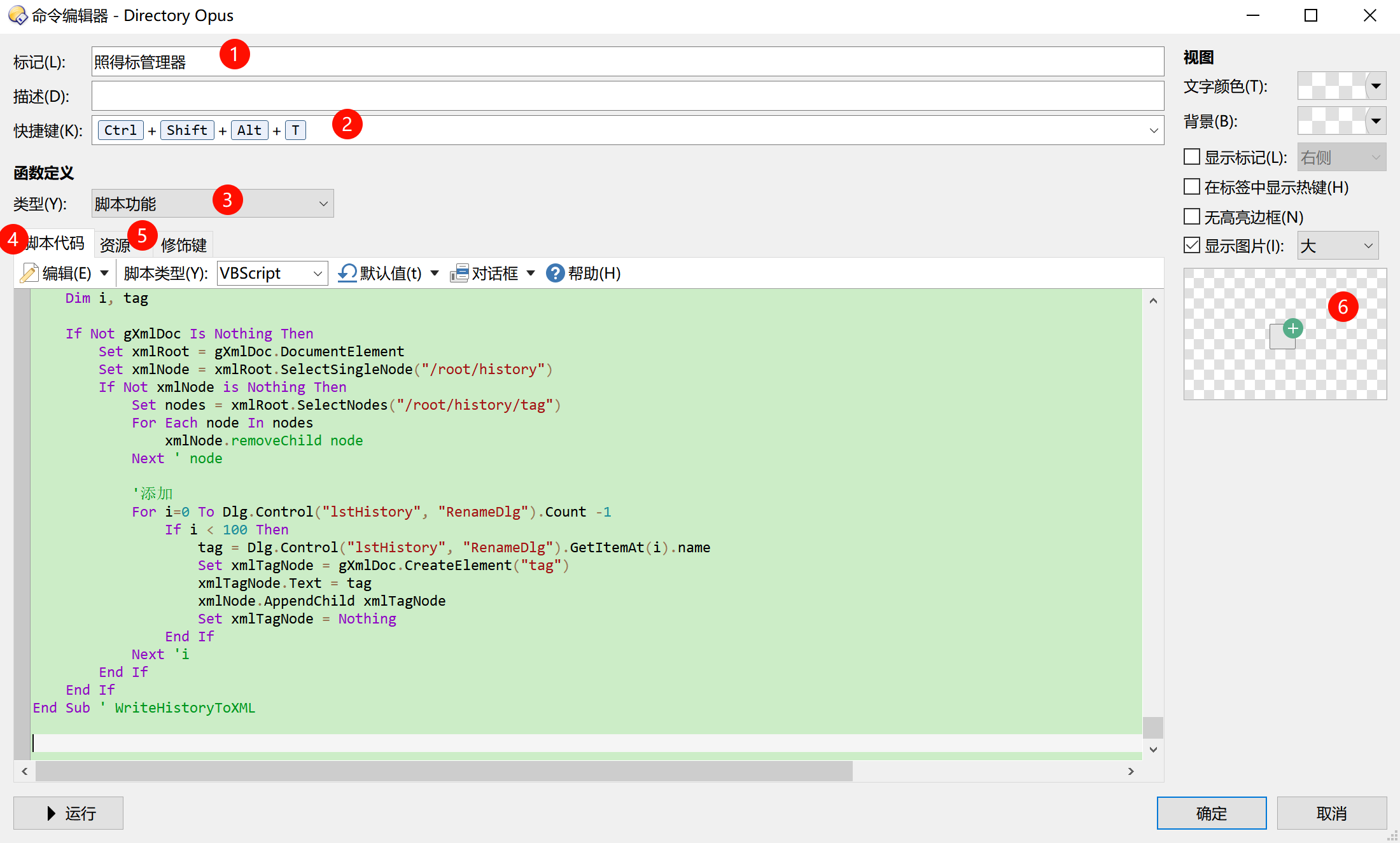 照得标管理器.dlg文件全部内容拷贝到该标签下的编辑窗口。(注意:先清空该编辑窗口) - 单击如图中标注⑥处的图标,选择自己喜欢的图标。(本步骤可以省略)