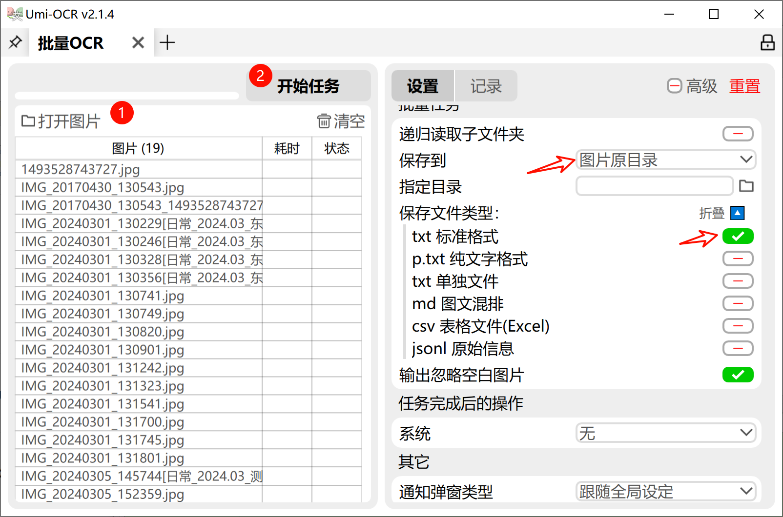 做为补救,需要用户动动发财的小手,使用Umi-OCR进行批量文字识别,操作过程如下图所示,由于太简单,这里就不展开。