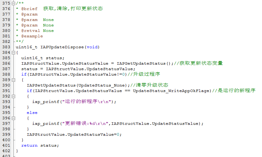 4.处理更新(这个程序需要在认为用户程序没有问题的时候在用户程序里面执行一下)