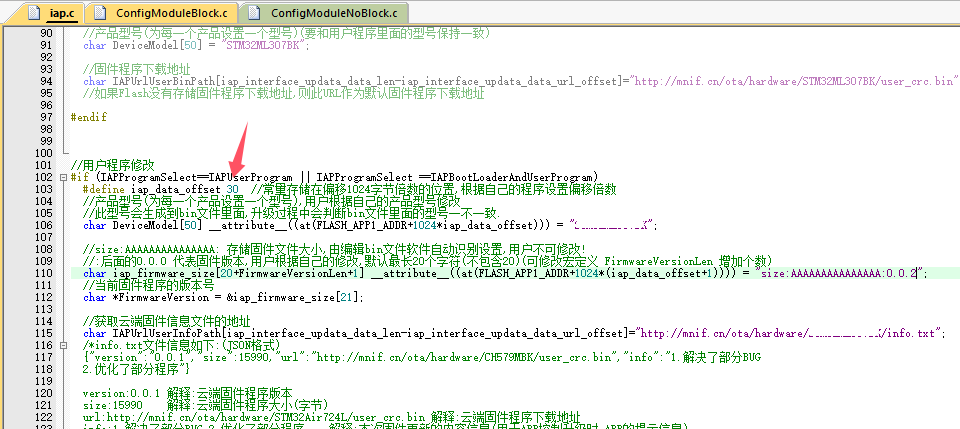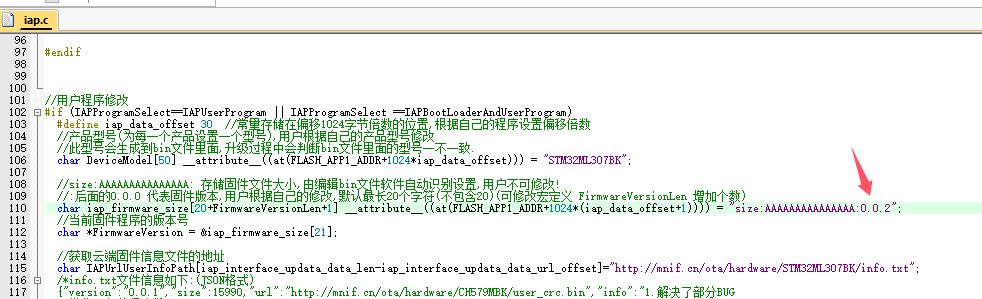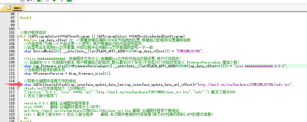 3.修改记录云端固件信息文件下载地址(我的为:http://mnif.cn/ota/hardware/STM32ML307BK/info.txt)