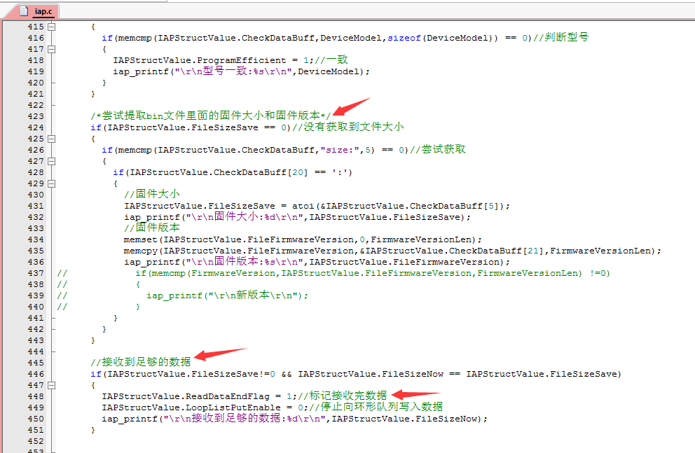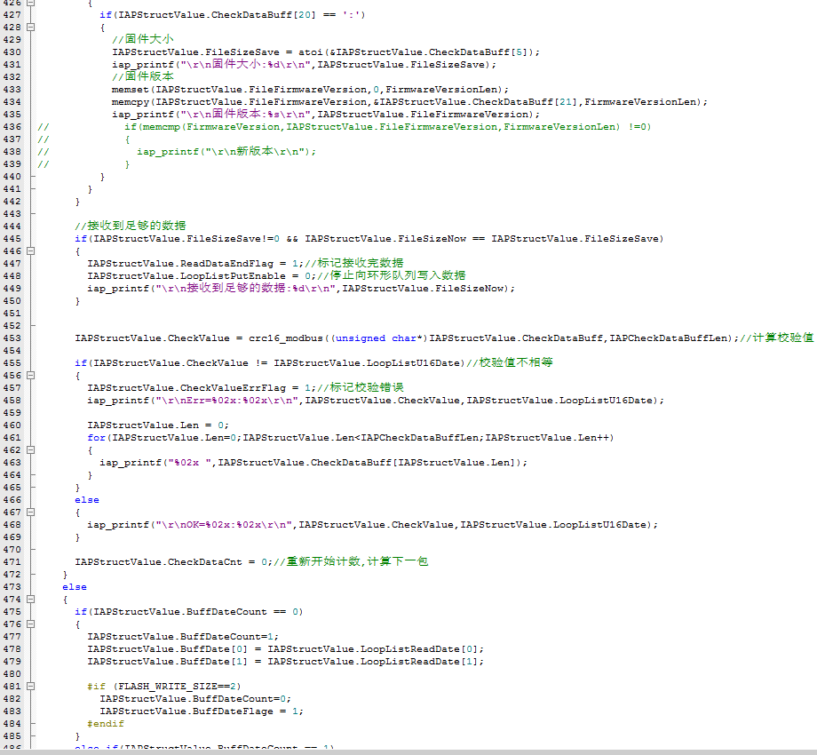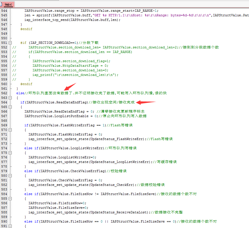 设置 IAPStructValue.ReadDataEndFlag = 1;认为接收完成