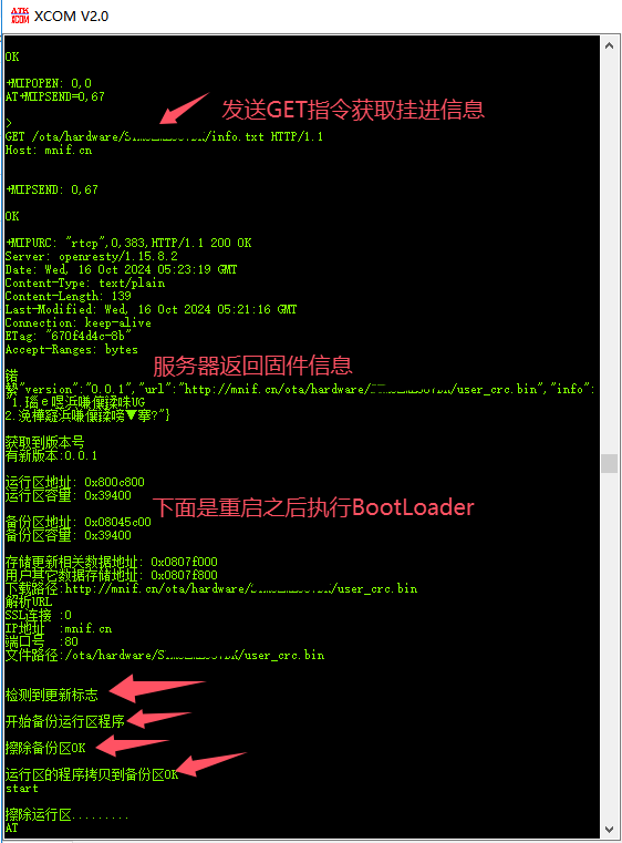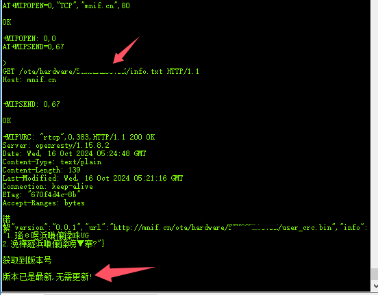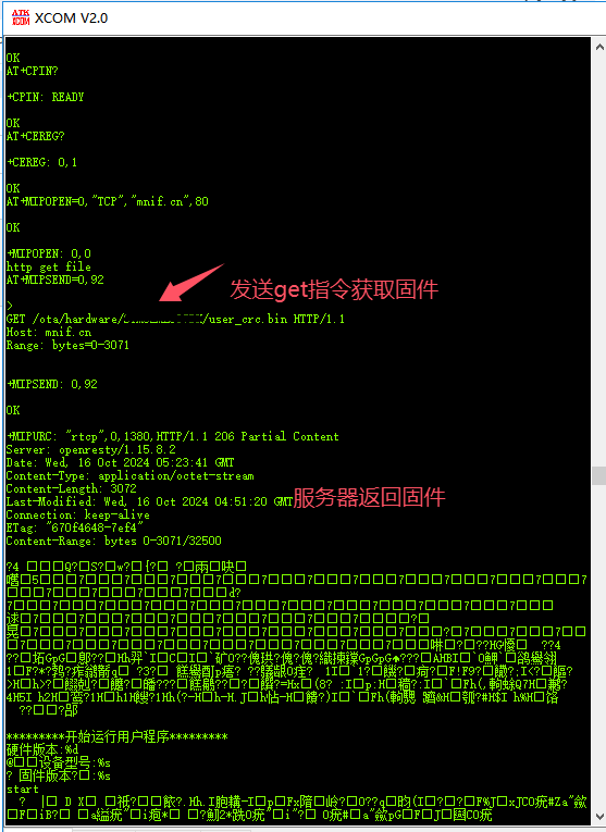 5.控制模组发送get指令获取服务器上记录固件信息的文件
