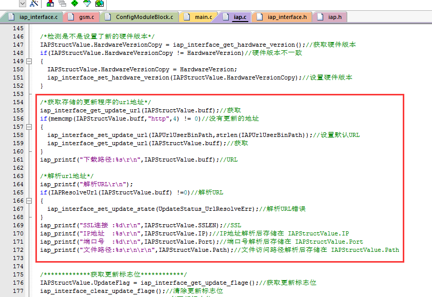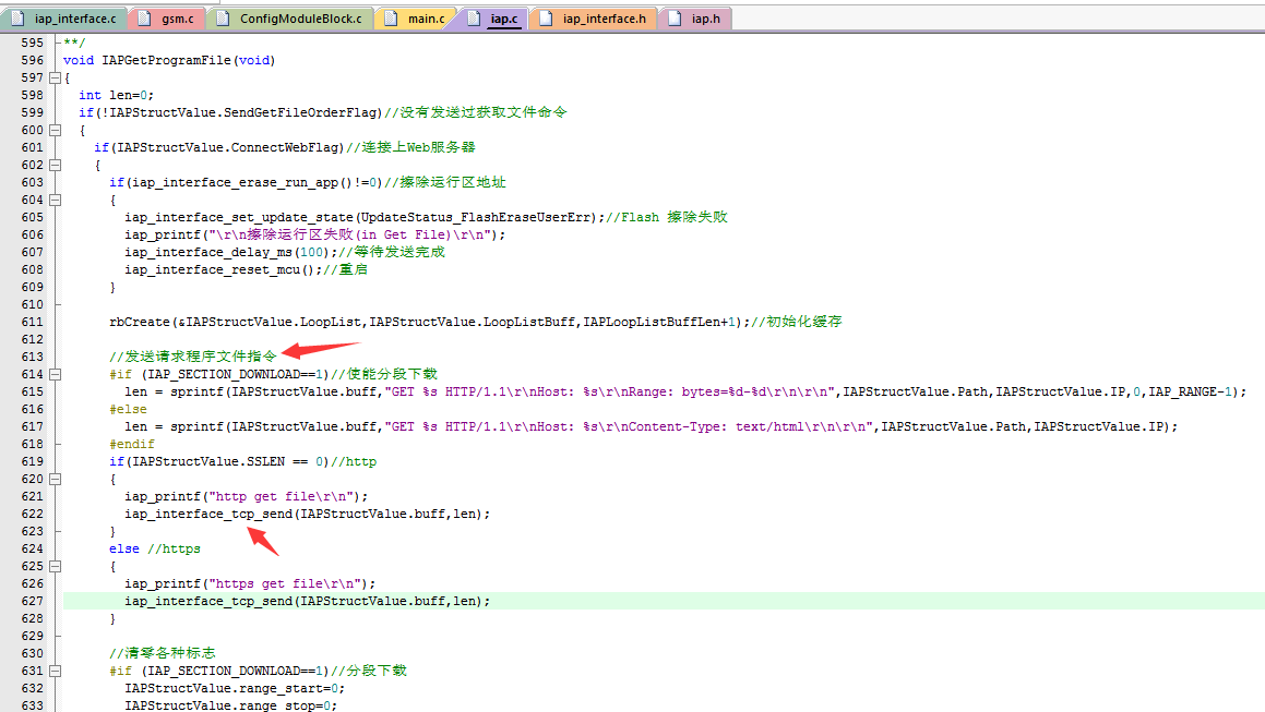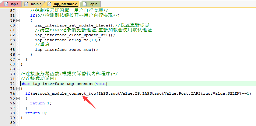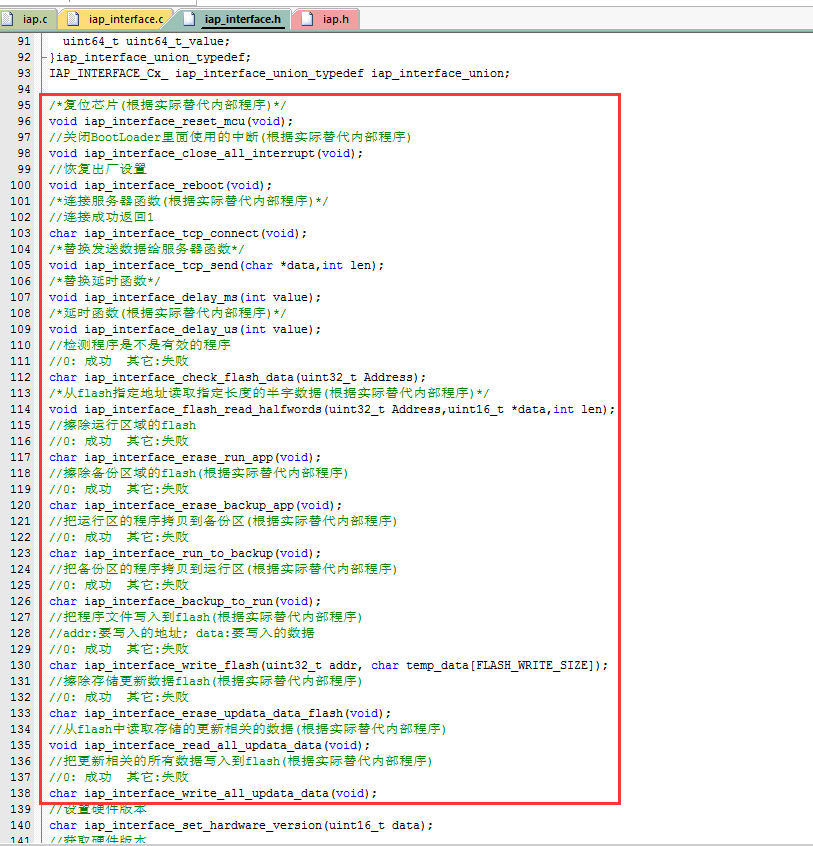 根据移植的单片机实现内部的接口,只要完成里面的接口就完成了升级程序框架