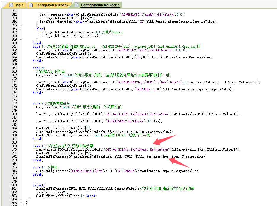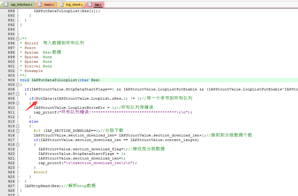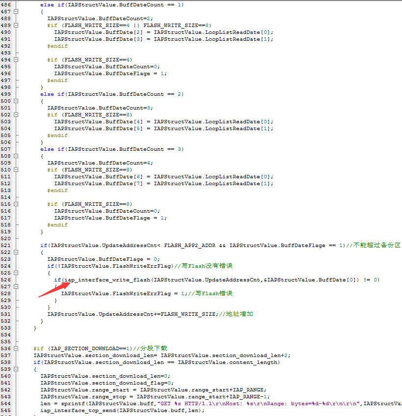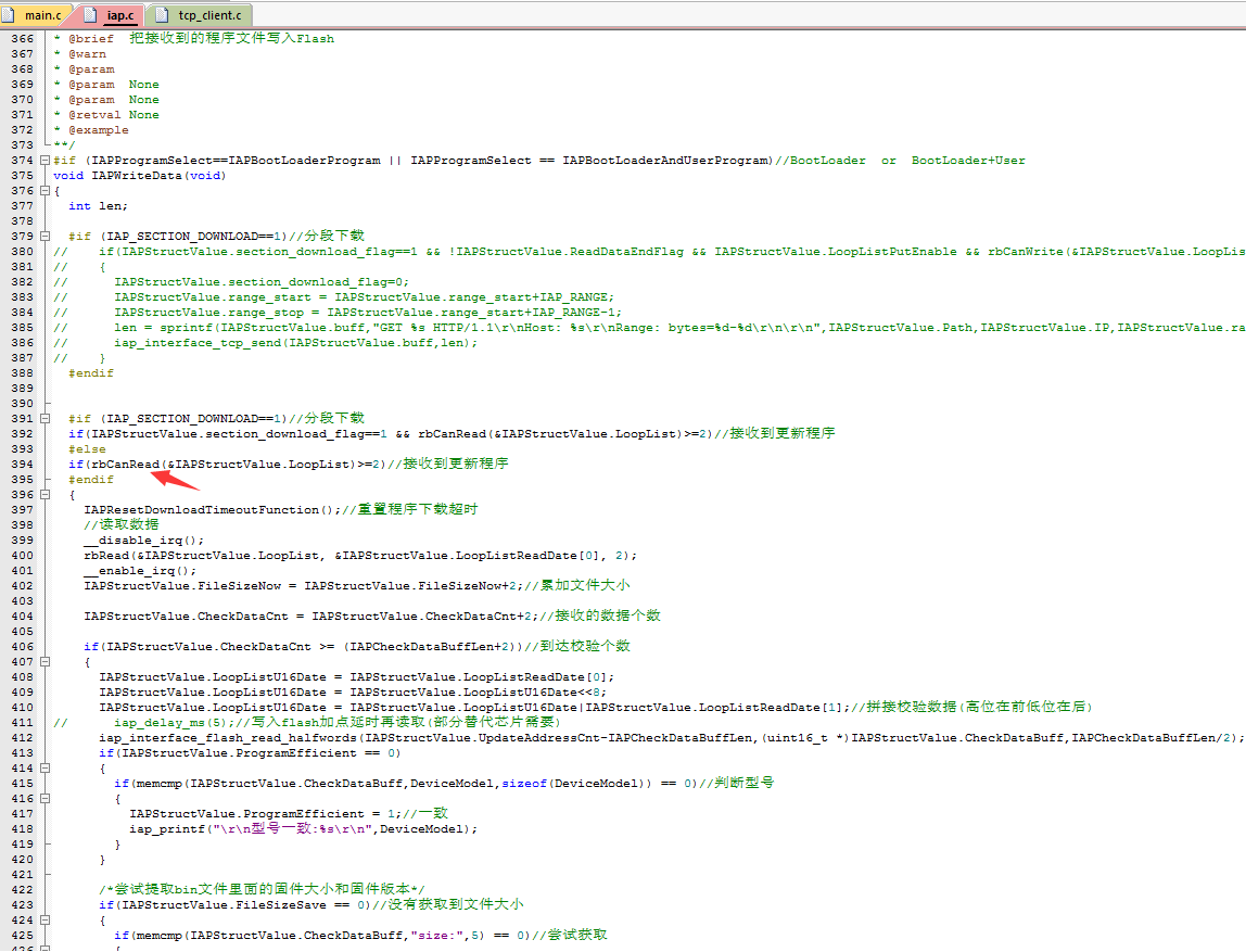 8.在TCP接收数据函数里面把固件数据写入缓存