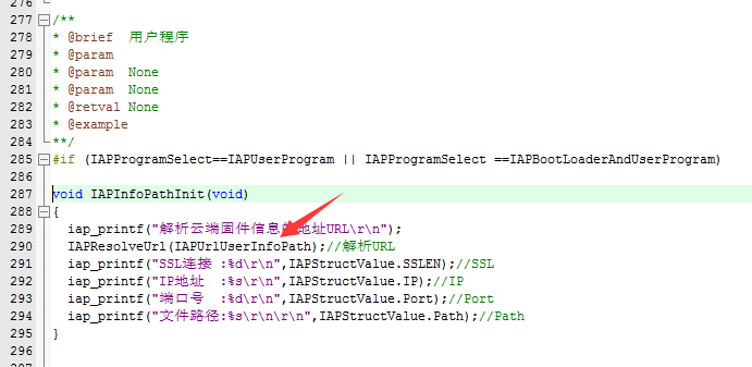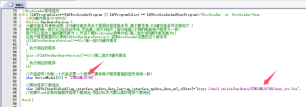 5.修改BootLoader程序 的 IAP.c (设置下产品型号和默认的固件程序下载地址)