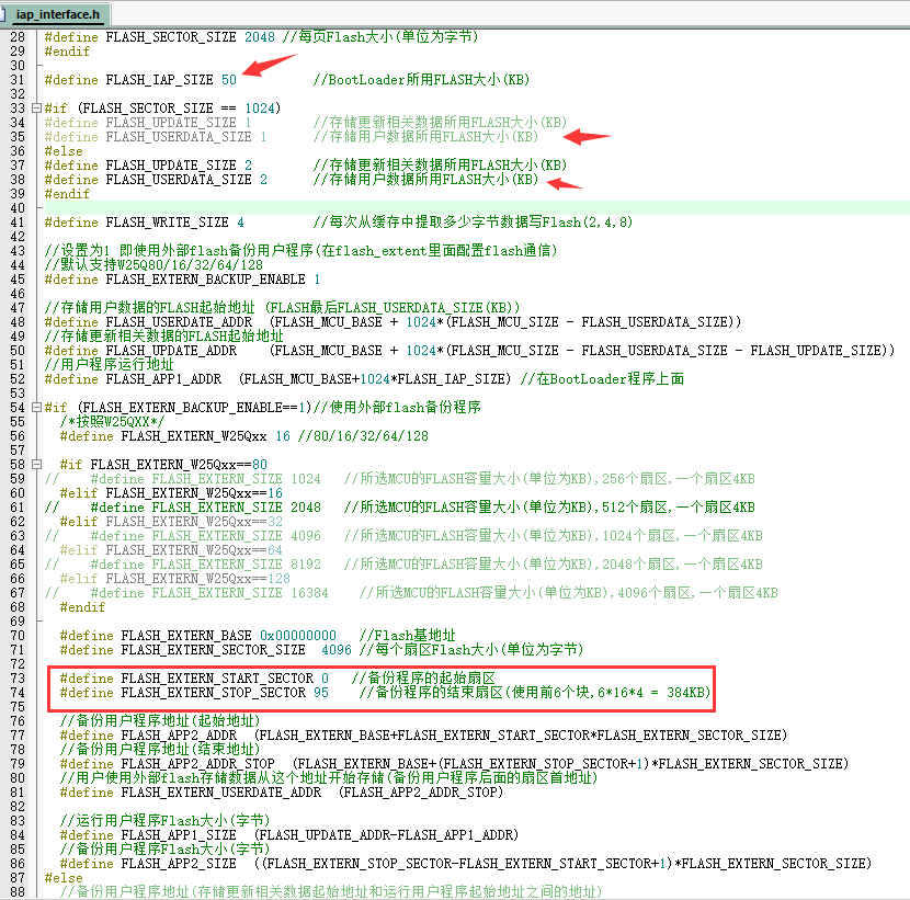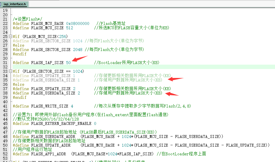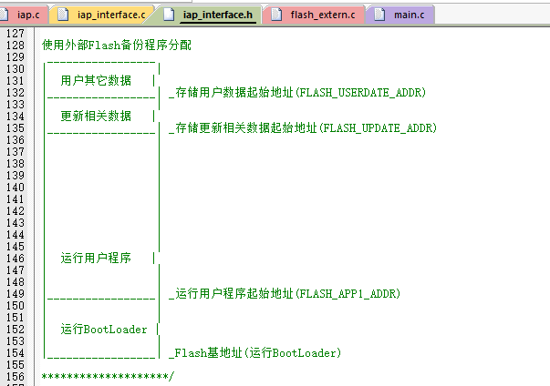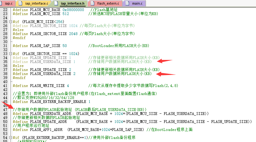 为了不影响备份区,我给用户提供了数据存储的起始地址: FLASH_EXTERN_USERDATE_ADDR
