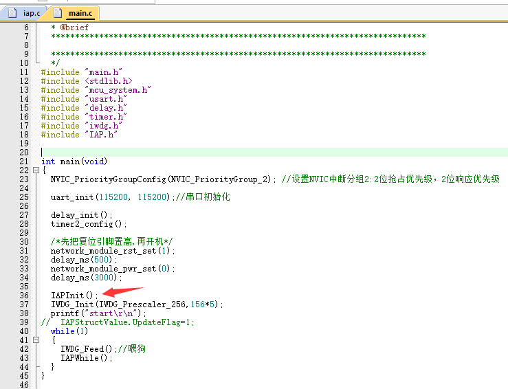 2.修改 用户程序(mcu_project) 的IAP.C文件