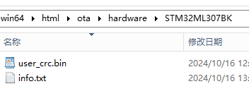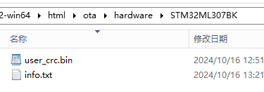 http://服务器IP地址/ota/hardware/STM32ML307BK/user_crc.bin