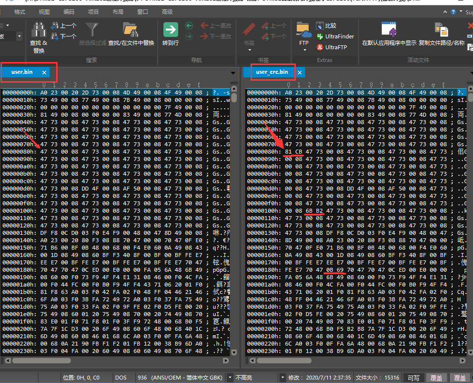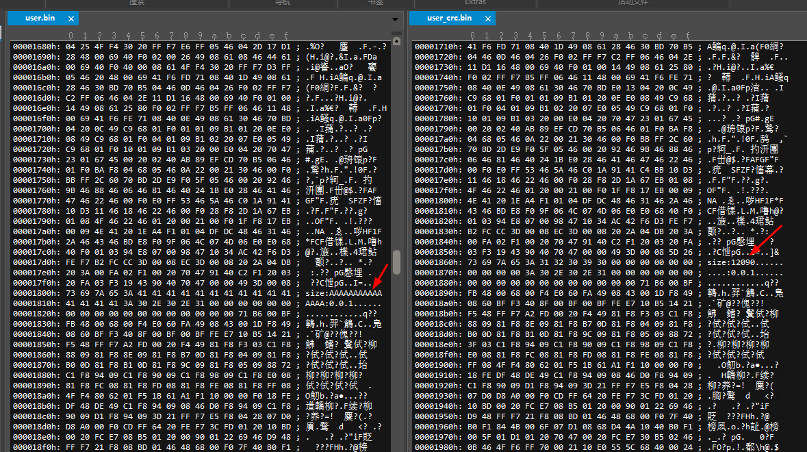 1.user_crc.bin文件是在user.bin的基础上增加了CRC校验位