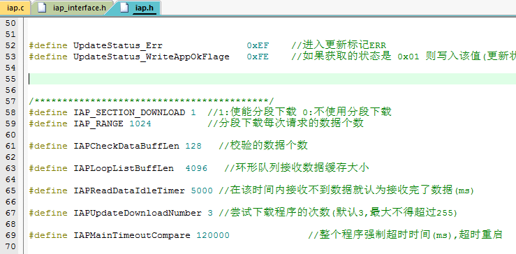 1.打开BootLoader 或者 用户程序(mcu_project)里面的iap_interface.h 文件